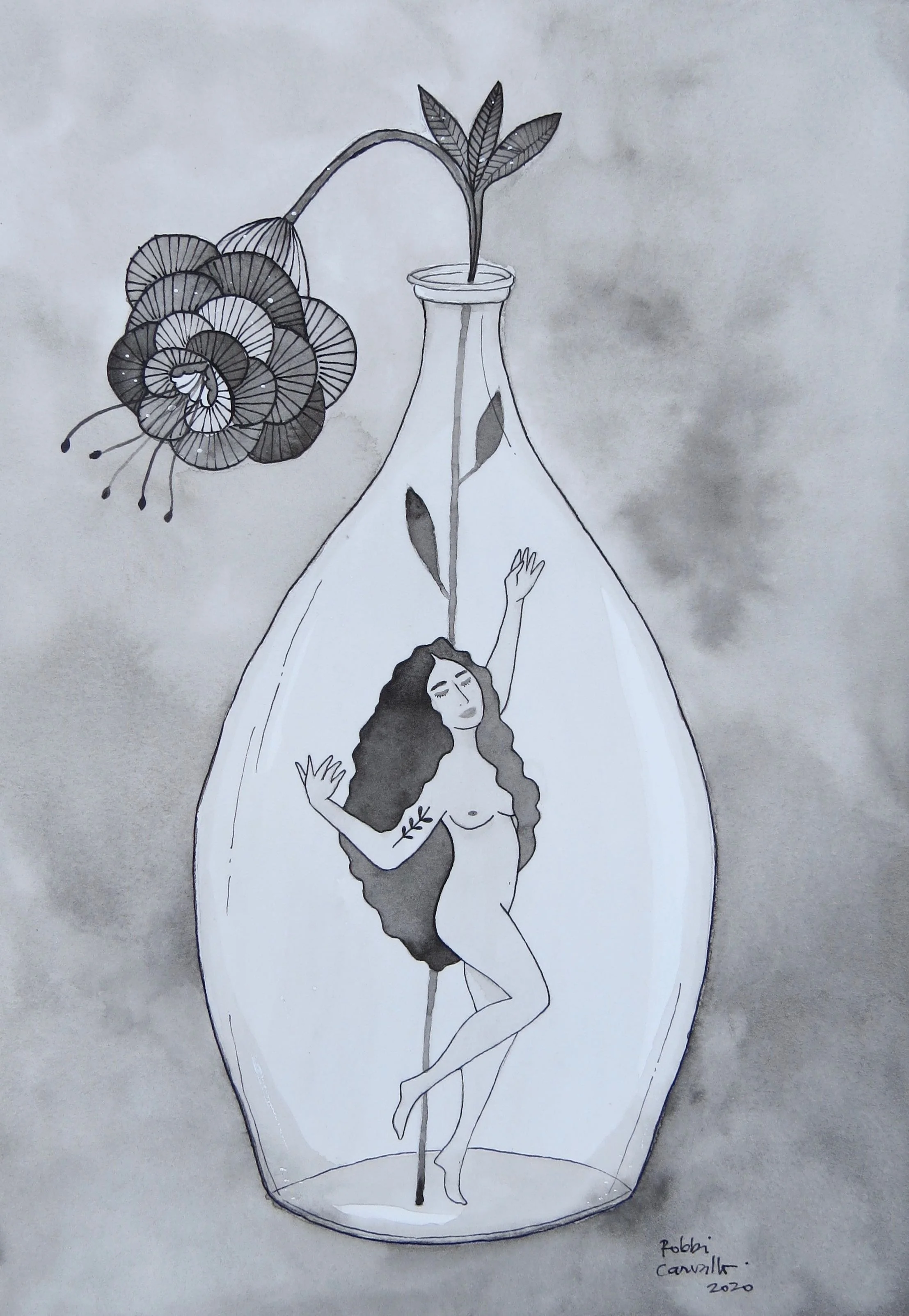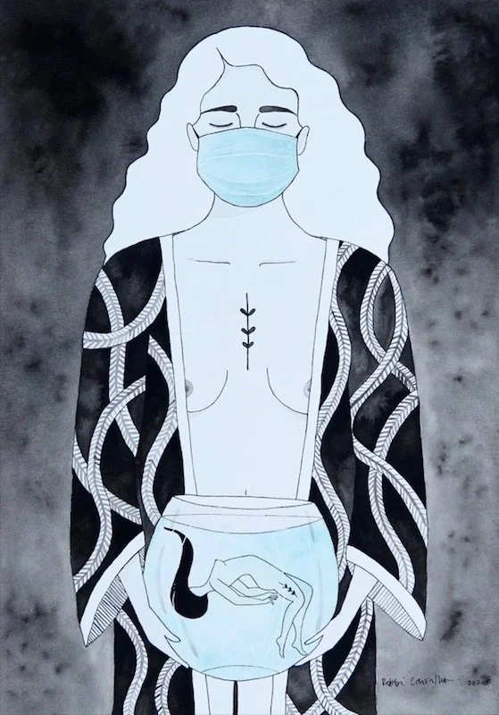 84.207 were killed in my country by Covid-19. Those infected already exceed 2 million. I don't need to wear masks, but I can't breathe. During the day, the weighty body moves without grace, being pushed by daily tasks. In Brazil, my family and friends have been inside their homes for over 100 days. Sleepless, I wander along the banks of the river that flows in me, every night. As if in a ritual, I bathe in these waters and let them wash me. I let them take me. I surrender to the force of the current because the only thing I have left is my intuition. Only with my eyes closed can I see the future. My art is a silent scream.